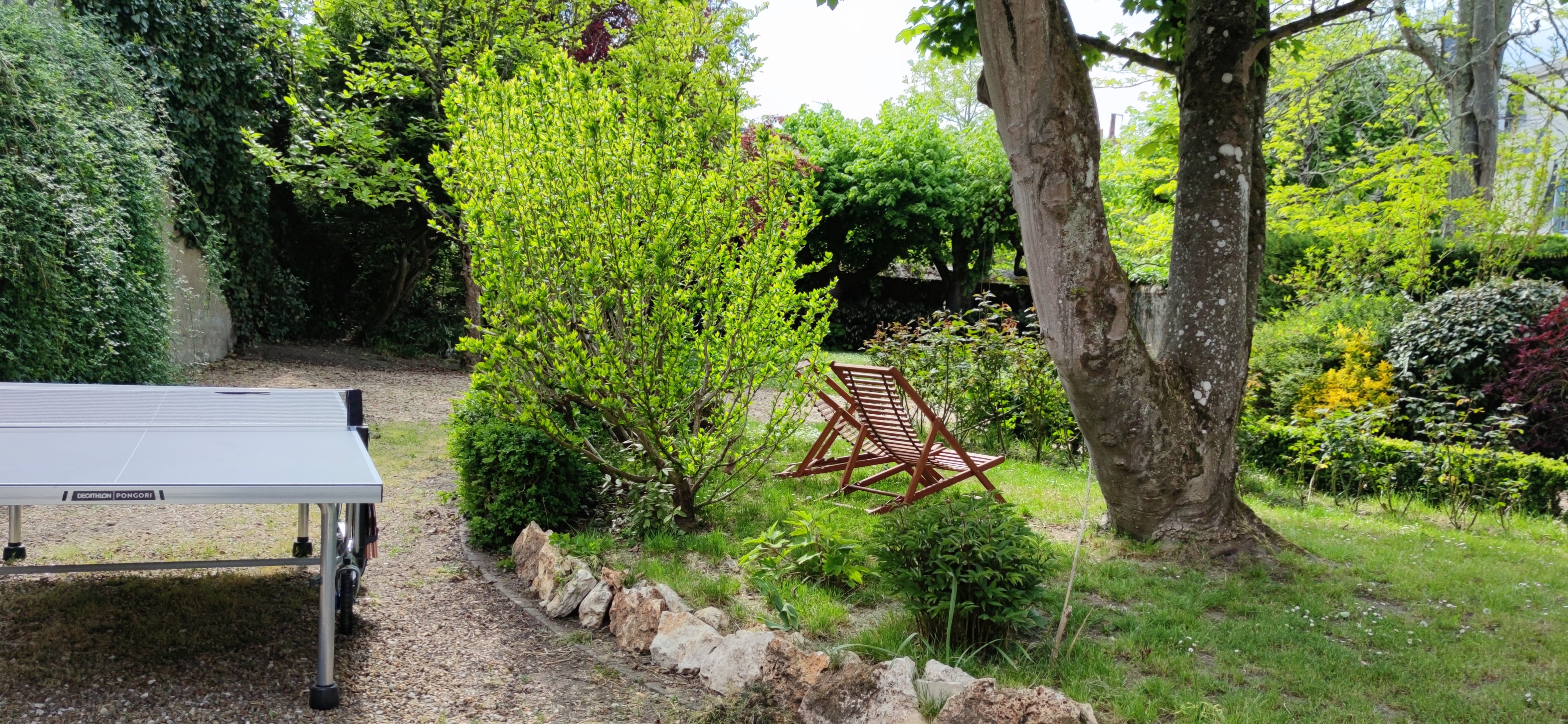 Le gîte dispose également d’une terrasse privative et vous pourrez profiter d’un jardin commun avec transats, table de ping-pong, barbecue et d’un espace technique avec lave-linge en libre accès.